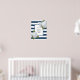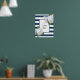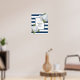 Affiche Élégant Accueil Floral Moderne Rayure Blanche Bleu