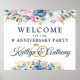 Bienvenue aux invités à une fête d'anniversaire mariage ou à une autre célébration avec ce signe de bienvenue éditable titre de l'événement qui présente des fleurs de printemps et/ou d'été en bleu, rose et or et leurs noms en calligraphie élégante typographie de script sur anneaux mariages et une photo. Idéal pour célébrer une cérémonie de mariage, une réception de mariage, une douche de couple, une fête de fiançailles ou un événement de renouvellement de voeux mariage. OPTIONS : L'échantillon est présenté dans une taille de 20 pouces sur papier de valeur (Matte); d'autres tailles d'impression standard et personnalisées, qualité et encadrement du papier, fichier de téléchargement numérique instantané pour impression locale ou le transfert de la conception à une planche de mousse, bannière, toile ou d'autres options de produit sont disponibles sur la page de commande. CONSEIL DE REdimensionnement : Choisissez Taille personnalisée pour les bordures paires en modifiant la hauteur et la largeur proportionnellement APRÈS avoir cliqué sur l'icône DÉVERROUILLER (ressemble à un lien de chaîne). ASSISTANCE : Pour obtenir de l'aide sur la modification ou la personnalisation de la conception, le redimensionnement, le transfert de la conception ou si vous souhaitez coordonner des éléments, contactez le concepteur AVANT LA COMMANDE via l'onglet MESSAGE Conversation Zazzle ou envoyez un courriel à makeitaboutyoustore@gmail.com.