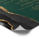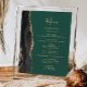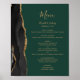 Le bord gauche de cet élégant panneau de menu mariage moderne comporte une bordure en aquarelle noire ornée d'une parties scintillant en faux or. Le mot "Menu" apparaît en écriture manuscrite de couleur or sur un arrière - plan vert émeraude foncé. Personnalisez le texte restant avec les noms du couple, la date du mariage et les détails du menu.