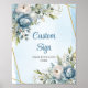 Affiche Élégant bleu Dusty Floral do-it-yourself Mariage