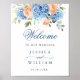 Affiche Élégant bleu Hydrangea rose Rose Mariage