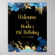 Affiche Elegant Blue and Gold Flowers Birthday Party