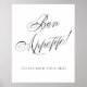 Cette enseigne romantique et intemporelle "Bon appétit : S'il vous plaît trouvez votre siège" ajoute une élégance simple à toute réception de mariage, douche ou motif de fête classique. Le luxueux modèle de script dispose d'une superbe calligraphie moderne et fantaisiste sur arrière - plan blanc. La belle police avec une couleur arrière - plan personnalisable permet de s'adapter facilement à n'importe quel thème. Pour d'autres couleurs ou produits correspondants, veuillez visiter le magasin JustFharryn Zazzle, ou contacter le concepteur, c/o Fharryn@yahoo.com Tous droits réservés. #zazzlemade