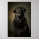 A stunning studio portrait of a dog illuminated with dramatic Rembrandt lighting. This elegant composition gives the image a timeless, noble quality, making it perfect for pet lovers and interior art collections.