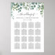 L'élégante affiche du tableau de sièges mariage vertical présente un monogramme de scénario de calligraphie moderne des noms des mariés et des mariés et un design vert d'aquarelle organique avec le feuillage d'eucalyptus, les branches feuilles et argent de l'eucalyptus dans des tons doux et verdoyants de menthe, vert, olive et bleu vert muet. Parfait pour un événement de printemps ou d'été. Personnalisez avec vos noms d'invités mariages et numéros de table pour votre journée de mariage rustique et chic.