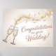 Une image élégante et festive avec une belle carte de voeux design. Il présente deux flûtes de champagne en torréfaction, accompagnées d'un flot festif de parties scintillant dorées et de pétales délicats. Le texte "Félicitations à votre Mariage !" est écrit dans un script gracieux et fluide.