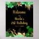Affiche Elegant Green and Gold Flowers Birthday Party