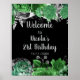 Affiche Elegant Green and Silver Flowers Birthday Party