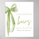 Ajoutez un peu de plaisir à votre événement avec notre poster de jeu "Elegant Green Bow Guess How Many Bows". Doté d'un design élégant à arc vert, ce poster est parfait pour séduire les invités à des douches nuptiales, des baby showers ou des fêtes d'anniversaire. Vous pourrez deviner combien d'arcs se trouvent dans le bocal, créant une atmosphère animée et interactive. Imprimé sur un carton de haute qualité, ce poster de jeu non seulement a l'air beau mais est aussi durable, assurant qu'il sera un ajout délicieux à votre décor de célébration.
