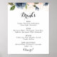 Affiche Panneau de menu de boissons de mariage floral élég