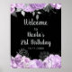 Pretty birthday welcome sign with lilac purple flowers and silver foliage. The words can be changed to suit your own details or requirements. Would be perfect for a birthday party.