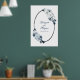 Une élégante affiche de cerceau bleu à fleurs mariage avec les noms de la mariée et du marié et leur date de mariage.