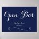 Affiche Élégant Mariage bleu marine Open Bar Sign
