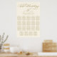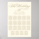 Élégant script de calligraphie noire mariage design d'affiche d'affichage comprend un monogramme des noms de mariée et de mariée et la date du mariage et le texte du modèle personnalisé pour dix-neuf (19) numéros de table et noms d'invités. Les couleurs comprennent l'ivoire et l'or au champagne.