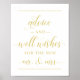 Un élégant conseil mariage et des voeux pour la nouvelle affiche / signe Mr et Mrs pour la réception de mariage dispose d'un jeu de couleurs or et blanc avec texte de script moderne.