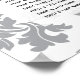 Ce design présente un élégant motif en feuille vintage et une image personnalisée de sceau de cire. L'arrière - plan damassé à motifs de feuilles grises contraste avec le ruban noir et le sceau de cire rouge. Le mélange de gris, de rouge, de noir et de blanc crée un style chic, chic et chic. Design élégant de la carte des sièges de mariage avec des éléments modernes. La configuration simple de la typographie lui donne un style distinct. Des invitations de mariage et d'autres articles de papeterie sont également disponibles.