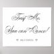 Cette belle et intemporelle signalisation horizontale "Faites-moi confiance You Can Dance, Alcohol" humoristique ajoute une élégance simple à toute réception de mariage classique, douche ou motif de fête. Le design de script luxueux comprend une calligraphie noire moderne fantaisiste et romantique. La belle police avec une couleur arrière - plan personnalisable permet de s'adapter facilement à n'importe quel thème. Pour d'autres couleurs ou produits correspondants, veuillez visiter le magasin JustFharryn Zazzle, ou contacter le concepteur, c/o Fharryn@yahoo.com Tous droits réservés. #zazzlemade