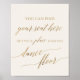Cette élégante enseigne de piste de danse en or et en ivoire est parfaite pour un mariage simple. Le design neutre est orné d'une affiche minimaliste ornée d'une typographie romantique et fantaisiste en feuille d'or. Le panneau indique "vous pouvez trouver votre siège ici, mais votre place est sur la piste de danse". Encadrez ce panneau et mettez-le sur la table de la réception avec vos cartes de visite. Remarque : Ce design ne comporte pas de véritable feuille d'or. C'est un graphisme de haute qualité fait pour ressembler à du papier doré.