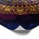 Magnifique imprimé de mandala de lotus circulaires en or métallique simulé lumineux sur un arrière - plan de nébuleuse sombre, inspiré de l'art corporel au henné mehndi.