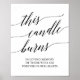Ce panneau élégant à calligraphie noire "cette bougie brûle" est parfait pour un mariage simple. Le design neutre présente une affiche minimaliste décorée d'une typographie romantique et fantaisiste.