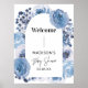 Bienvenue dans votre baby shower avec cet élégant panneau fleuri bleu. Avec un agencement étonnant de fleurs d'aquarelle dans les tons bleus, ce panneau personnalisable ajoute une touche personnelle à votre événement. Parfait pour accueillir les clients et donner le ton d'une fête mémorable, ce panneau d'accueil est conçu avec un aménagement moderne en arc et convient à tous les thèmes de baby shower. Personnalisez les détails pour en faire le vôtre.
