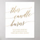 Ce panneau élégant avec écriture calligraphique en or "cette bougie brûle" est parfait pour un mariage simple. Le design neutre présente une affiche minimaliste décorée d'une typographie romantique et fantaisiste en faux feuillet d'or.