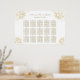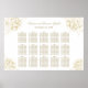 L'élégante conception de l'affiche du mariage de pivoines comprend un monogramme des noms de mariée et de mariée et la date du mariage, du texte modèle personnalisé pour les numéros de table et les noms d'invités, ainsi que des pivoines avec un look dessiné / dessiné à la main. Les couleurs comprennent le latte/champagne, les pivoines florales or, l'arrière - plan blanc et le texte d'or antique.