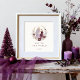 This poster features an exceptionally elegant and spiritual design, showcasing a delicate illustration of the Holy Family surrounded by a wreath of flowers and Christmas foliage in plum tones. The composition conveys serenity, faith, and a deep sense of devotion, making it a perfect choice for those wishing to share a Christmas message with meaningful religious focus. The harmonious colors and refined aesthetic add a warm and sophisticated touch, ideal for celebrating the birth of Jesus with beauty and respect.