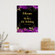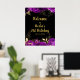 Pretty birthday welcome sign with purple flowers and gold foliage. The words can be changed to suit your own details or requirements. Would be perfect for a birthday party.