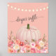 Profitez de cet élégant baby shower à fleurs d'automne pour une petite fille. Rose, coraux et fleurs jaunes avec un arrière - plan rose vif et "tombola de couche" au-dessus du citrouille. Feux à cordes en haut et ruban rose enroulés autour de la tige citrouille.