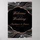 Affiche Elégant Rose noir Gold Foil Agate Mariage Bienvenu