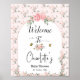 Affiche Elégant rose Roses & Baby shower papillon Bienvenu