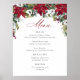 Affiche Elégant Rouge Poinsettia Menu Mariage de Noël