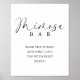 Wouah vos invités avec un bar mimosa personnalisé surmonté de cette belle affiche comme point de convergence. La police de script ajoute un air d'élégance tandis que la simplicité garde l'accent sur les boissons. Les amis se sentiront choyés et aimés par un bar mimosa décoré de cette enseigne spéciale. Pour la mariée moderne à la recherche d'un décor de douche nuptiale simple mais élégant, cette affiche est juste. Le modèle noir et blanc fonctionne avec n'importe quelle palette de couleurs et le design minimal est à la fois classique et frais. Donnez un look poli à votre station mimosa avec ce panneau indispensable !