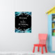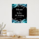Affiche Elegant Teal Blue and Silver Flower Birthday Party
