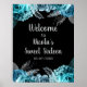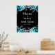 Affiche Elegant Teal Blue and Silver Flowers Sweet Sixteen