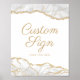 This is a Elegant White Gold Agate Custom Text Party Sign!