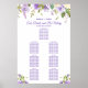 Ajoutez votre touche spéciale à cette élégante aquarelle violette design florale avec script moderne et texte violet. Ce tableau de sièges présente les noms de la mariée et du marié ainsi que les mots "Mangez, Buvez et Soyez Joyeux" et "S'il vous plaît, trouvez votre siège". Les modèles peuvent accueillir jusqu'à sept tables et jusqu'à 10 ou 11 noms par table.