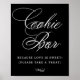 Ce "Cookie Bar : Parce que l'amour est doux ! (s'il vous plaît prenez un plaisir)" signe de table ajoute une élégance simple à tout motif classique de mariage, douche ou fête. Le luxueux modèle de script dispose d'une superbe calligraphie blanche moderne et fantaisie sur arrière - plan noir. La belle police avec une couleur arrière - plan personnalisable permet de s'adapter facilement à n'importe quel thème. Pour d'autres couleurs ou produits correspondants, veuillez visiter le magasin JustFharryn Zazzle, ou contacter le concepteur, c/o Fharryn@yahoo.com Tous droits réservés. #zazzlemade