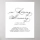 Ce panneau de calligraphie moderne élégante en souvenir est parfait pour un mariage rustique ou une fête de mariage. Le design simple et élégant présente une typographie classique et fantaisiste en noir et blanc.
