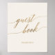 Ce panneau de signature de livre d'or ivoire avec calligraphie dorée élégante est parfait pour un mariage simple. Le design neutre présente une affiche minimaliste décorée d'une typographie romantique et fantaisiste en faux feuillet doré.