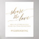 Cette élégante calligraphie dorée "partager l'amour" signe est parfaite pour un mariage simple. Le design neutre est orné d'une affiche minimaliste ornée d'une typographie romantique et fantaisiste en feuille d'or. Personnalisez le panneau avec votre hashtag mariage. Remarque : Ce design ne comporte pas de véritable feuille d'or. C'est un graphisme de haute qualité fait pour ressembler à du papier doré.