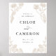 Le design présente une calligraphie vintage élégante inspirée des polices de caractères traditionnelles. Le design comprend une arche florale délicate dessinée à la main et inspirée de treillis de jardin avec des roses, des fleurs et des feuilles entrelacés. Minimaliste et élégant parfait pour mariage traditionnel et jardin.