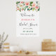 Bienvenue invités à votre mariage avec Elegant Blush Pink Flowers Boho Poster de Fête des mariées, avec de la verdure botanique d'aquarelle luxuriante et des fleurs blanches, avec "bienvenue à notre heureux toujours après", vos noms, et date mariage dans un mélange chic de bloc moderne et de caractères de calligraphie à la main.