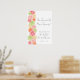 Ce panneau de bienvenue aux nuptiales, moderne et amusant, présente une colonne vibrante de tranches d'orange d'aquarelle, de citron, de citron et de pamplemousse qui descendent en cascade sur le côté gauche, apportant un regard frais et animé à votre espace de célébration. En haut à droite, l'expression "She Found Her Main Squeeze" s'affiche dans un élégant mélange de scripts manuscrits et de polices serif classiques pour une touche ludique mais élégante. Juste en-dessous, "Bienvenue à la Fête des mariées de [Nom de la mariée]" est affiché en évidence, avec la date de la douche en bas pour compléter la conception. La palette de couleurs est un joyeux mélange de roses, de jaunes, d'oranges et de verts, parfait pour une douche nuptiale d'été ou de printemps avec un thème d'agrumes ou de fruits. Entièrement personnalisable, vous pouvez ajuster le texte, les polices et les couleurs en fonction de votre décor ou de votre ambiance événementielle. Une façon lumineuse et joyeuse d'accueillir les clients et de donner le ton pour une fête fraîche et festive. Disponible soit en version imprimée, soit en tant que fichier numérique téléchargeable à imprimer à la maison ou localement.
