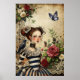 Affiche Elégante Gothique Girl & Raven Dans Jardin Rose