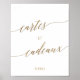 Ce panneau de cartes et cadeaux de calligraphie dorée élégante est parfait pour un mariage simple ou une fête prénuptiale.