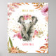 Affiche Éléphant à l'aquarelle Fleurs roses Fille Chambre