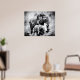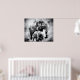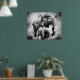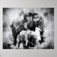 Affiche Eléphant africain avec veau noir et blanc