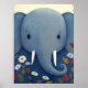 Affiche Éléphant et fleurs lunaires